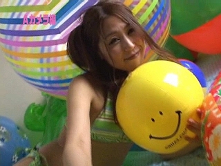 撮影会で大人気のメガネっ子アイドル、河井夕菜ちゃんがビーチボールと遊んじゃいました♪
