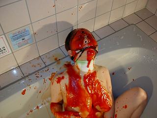 本来は食べるはずの食材で汚れてみます。